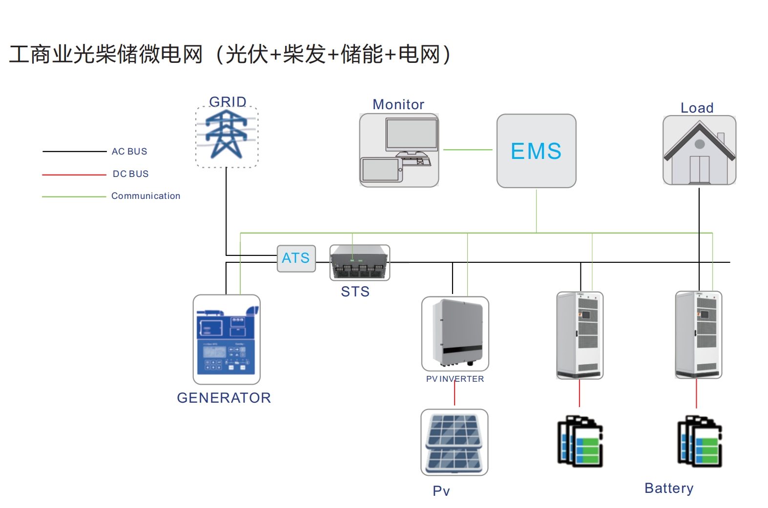 应用场景:工商业储能+应急备电、光储柴小型微网、移动储能、光储充电站