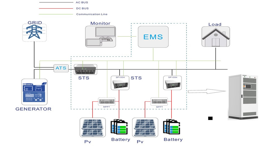 中腾微网SP500HCG2系列光储并离网一体机内部集成PCS、MPPT、EMS、PCM并离网切换开关、交直流配 电单元、油机控制、防雷器等。...